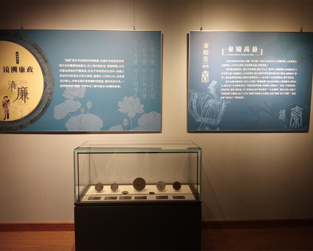 此次展览以时代为主线,分别从清冶铜华(秦汉时期)、繁花似镜(唐宋金元时期)、辉光流韵(明清时期)、镜溯廉政四个单元,集中展示铜镜在各个历史时代沿革中的文化特征和工艺特点,带领观众走进青铜的光影世界,了解我国璀璨的青铜文化,近距离感受青铜古镜的艺术魅力,从而弘扬清风廉洁主旋律,传递廉洁正能量。