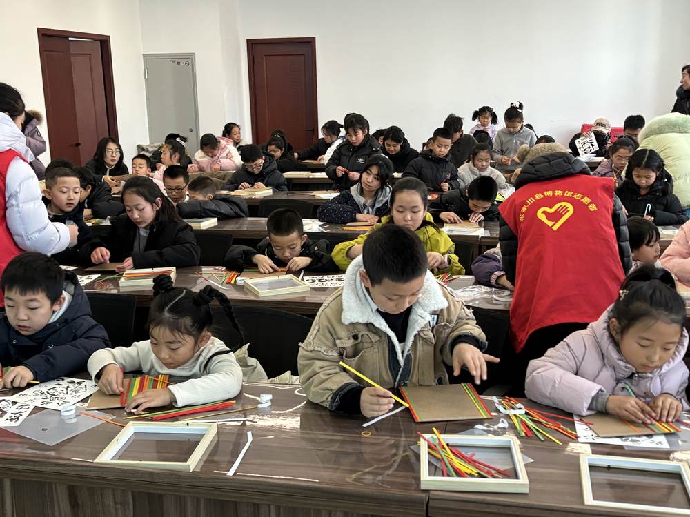 进入竹编画体验环节,社教老师详细讲解竹编技艺“压一挑一”的基础技法,阐述竹编从实用器具到艺术创作的演变历程,解读其“坚韧不拔、节节高升”的文化内涵。孩子们领取材料后,在老师与志愿者的指导下,一双双小手翻飞,一条条竹丝穿梭,不一会儿,一幅幅充满童趣与创意的竹编画作品便呈现在眼前,既锻炼了动手能力,又激发了对非遗文化的热爱。