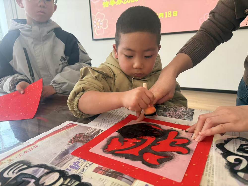 进入拓印体验环节,社教老师现场示范完整操作流程:从铺纸定位到拓包蘸墨、均匀捶拓,再到轻轻揭纸、自然晾干,步骤清晰、手法规范,现场还详细区分墨拓、朱拓两种常用拓印形式,讲解不同技法的特点与应用场景,孩子们认真聆听、动手实践,将马家塬车舆经典纹饰与新春福韵拓印于纸上,指尖触碰历史,匠心传承非遗。